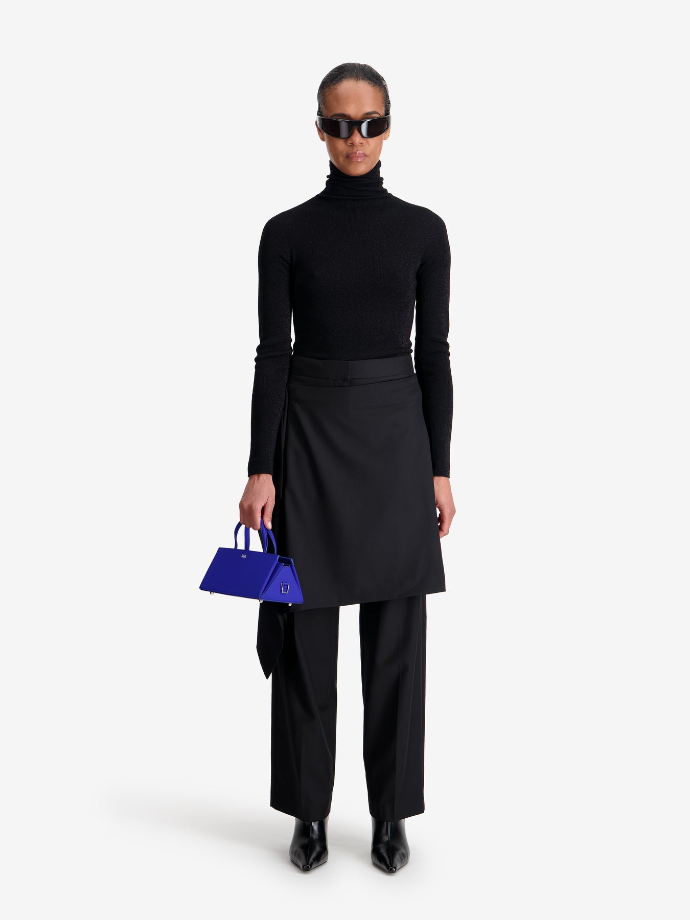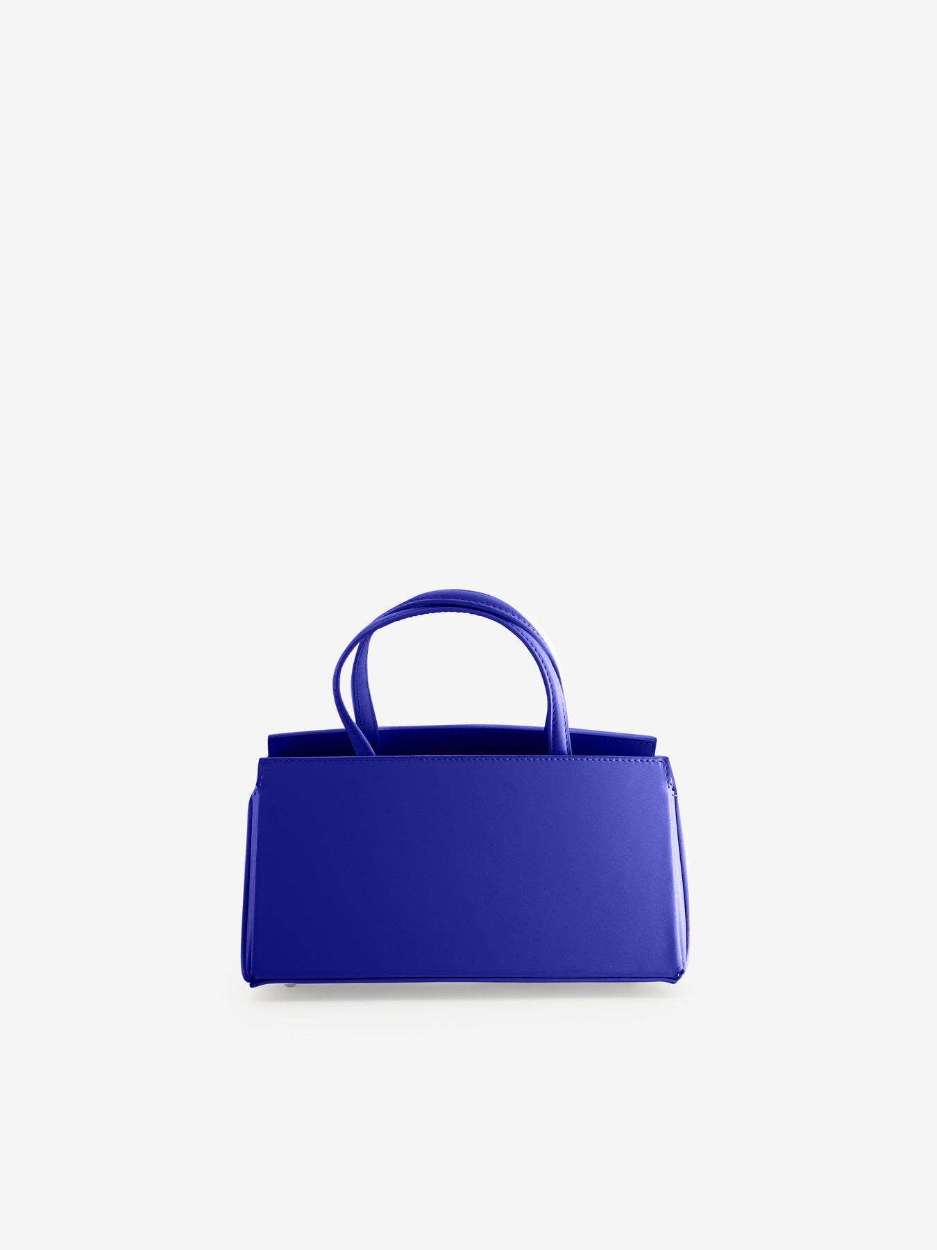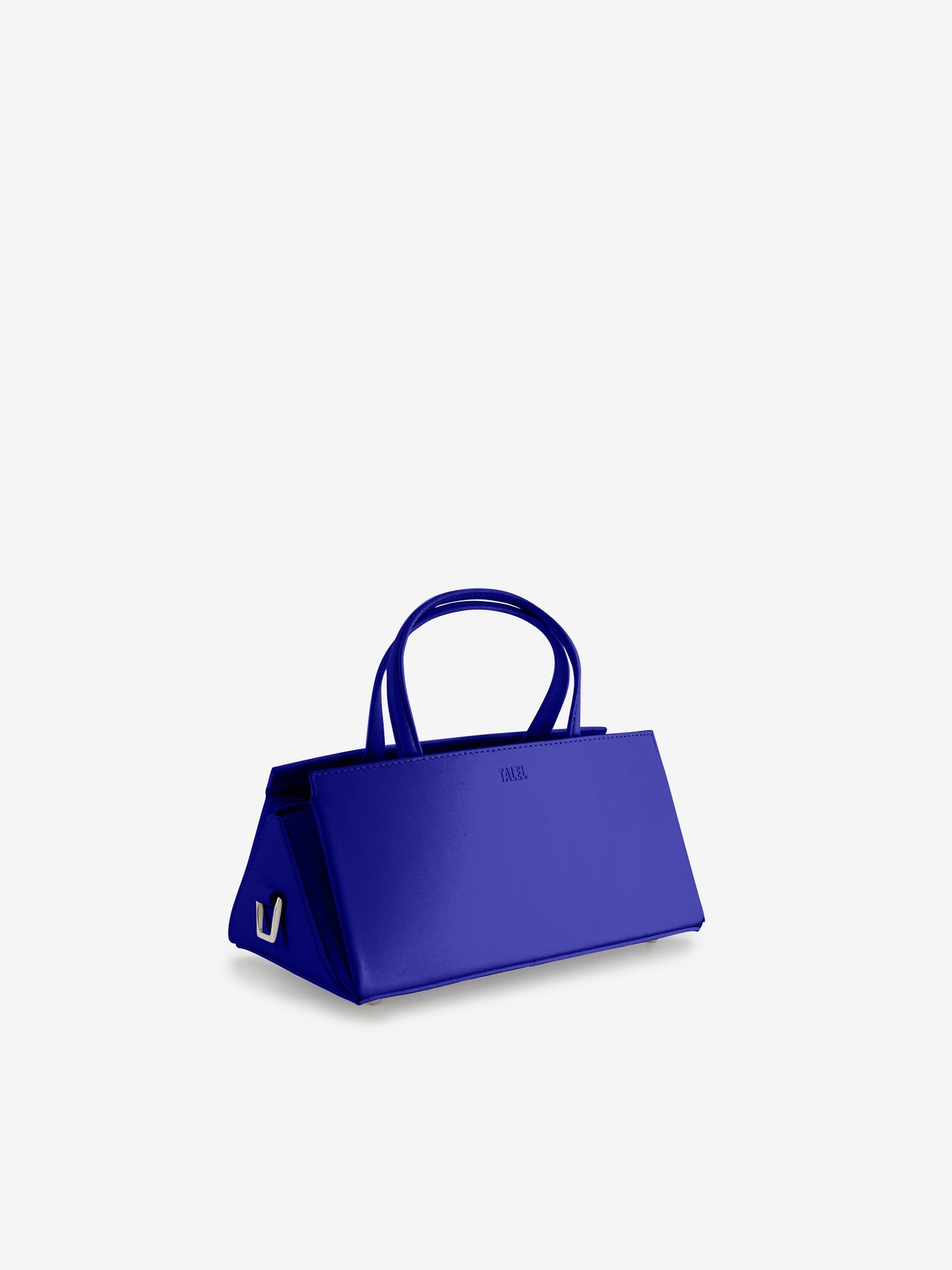 The triangle bag V2 baguette bag is crafted from Italian prestige leather featuring a sharp design, a top handle, an adjustable leather strap with silver hardware. Two internal zipped pockets.